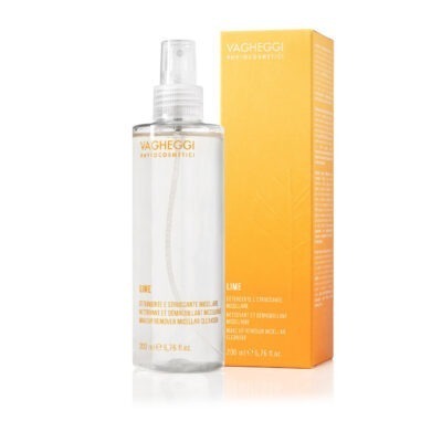 Lotion micellaire limpide et cristalline, idéale pour nettoyer, hydrater et rafraîchir la peau tout en la protégeant des agressions extérieures. Indiqué pour tous les types de peaux de jeunes à matures. Sa formule à base d’eau et de micelles est une structure ambivalente – lipophile/hydrophile – aux dimensions microscopiques qui enlève les impuretés, l’excès de sébum et le maquillage en douceur sur la surface de la peau. Ingrédients principaux : extrait d’eau de fleur d’oranger, betaine, huile essentielle de lime.